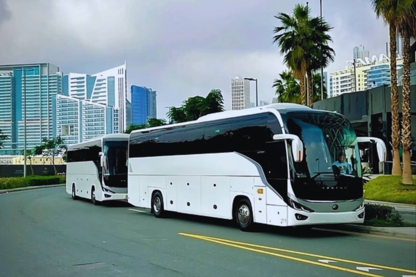 Our luxurious buses are available for city trips to Abu Dhabi and Dubai. Travel to some of the most famous locations in Dubai and Abu Dhabi on a 50-seater luxury coach. Whether you charter a 50-seater bus for wedding transportation, airport transfers, city tours, or any other occasion, our goal is to provide a trustworthy, secure, and safe service. For parties and gatherings in the city, our luxury coach rental in Dubai can meet all of your needs. Don’t worry about transportation; we’ll take care of everything so you can have the best possible time. Just concentrate on having a great time and making your special day one to remember.