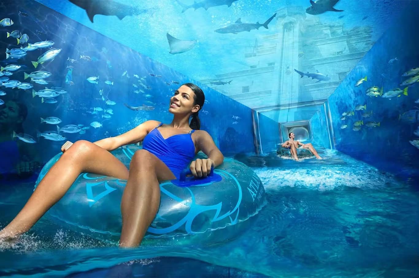 For thrill-seekers, try the exhilarating Poseidon’s Revenge, which plunges you into fast-paced loops through a trapdoor, or the imposing Odyssey of Terror, which promises near-weightlessness and pure excitement. Want to join in on the fun? Take your buddies on exhilarating group rides like the Shockwave or compete against one another on the Hydra Racer. If you’re more of a lounger, try floating down the lazy river or watching the sunset over the cityscape of Dubai from the beach. Additionally, you may enhance your experience by adding a dolphin meet and greet beside the pool or even a combo admission to The Lost Chambers Aquarium, where you can discover an underwater world with 65,000 different marine animals. Aquaventure has plenty to offer everyone, whether you’re a family seeking enjoyment or an adrenaline addict.