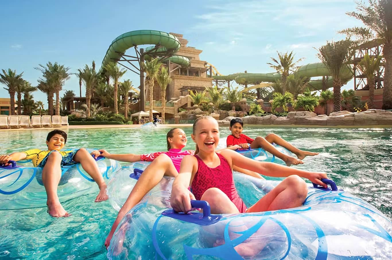 • Relax at Aquaventure Beach or float along the longest River Rapids in the world, which offers breathtaking views of the Dubai cityscape.