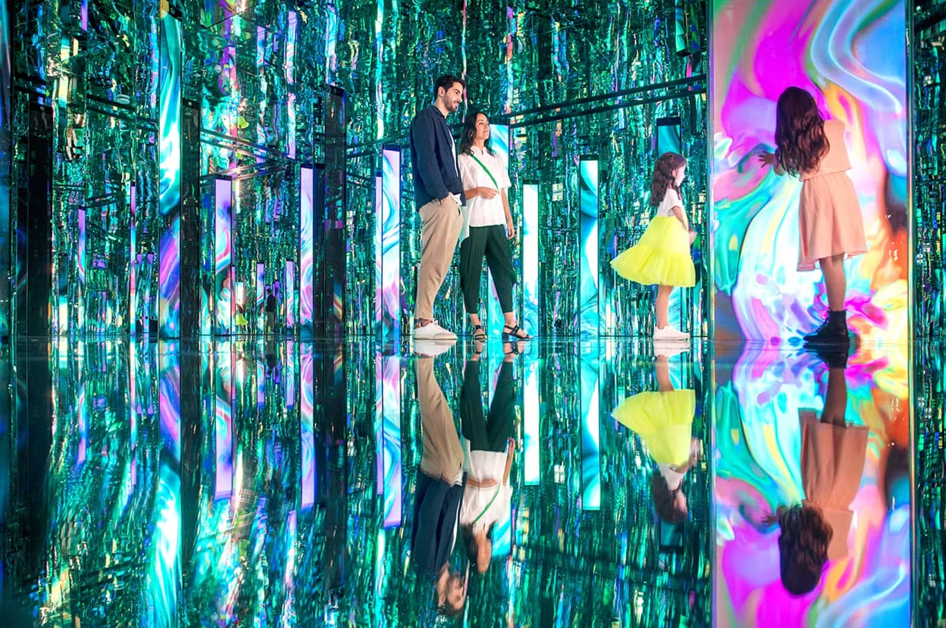 Embark on an immersive trip through AYA Universe, a 40,000-square-foot wonderland with 12 distinct zones, each with a distinctive theme that transports you to a different universe. Enter a chamber with digital pools at The Source, engage with a light beam to create a stunning galaxy at Celestia, and interact with distinct avatars in the Outland. End your voyage in Harmonia with a 3-minute robotic light show in an infinite mirrored space that will leave you in amazement.