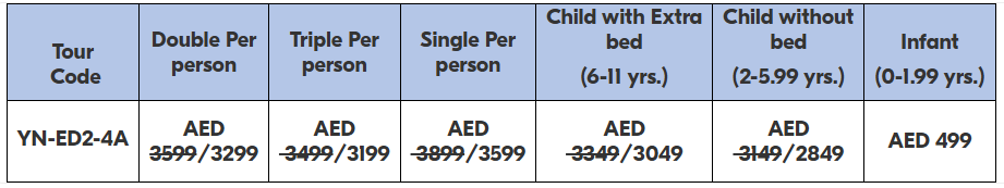 Armenia’s abundance of pristine natural beauty, combined with its rich past and ancient culture, make it an ideal destination for a remarkably relaxing holiday. The four-night, five-day Beautiful Armenia Eid Al Adha Special lets you to explore the country’s enticing attractions in complete safety and luxury.