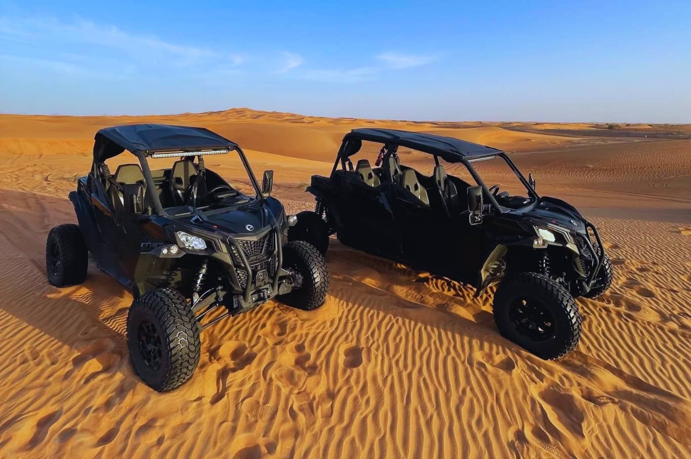 Take advantage of our cutting-edge equipment as you navigate the highest dunes of the Dubai desert, thanks to our Ultramatic gearbox, Smart-LokTM technology, and improved driving comfort. This all-terrain buggy has plenty of legroom and wide accommodations, ensuring a comfortable ride.