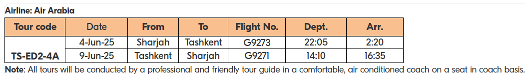 🚤 Guaranteed Early check-in on the day of arrival in Tashkent.