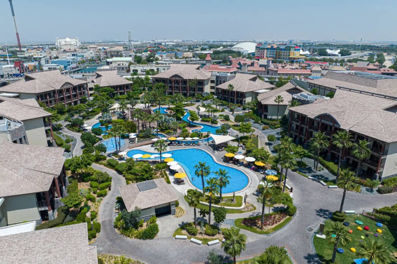 Great location inside Dubai Parks. The hotel feels like an island escape in the middle of the desert.