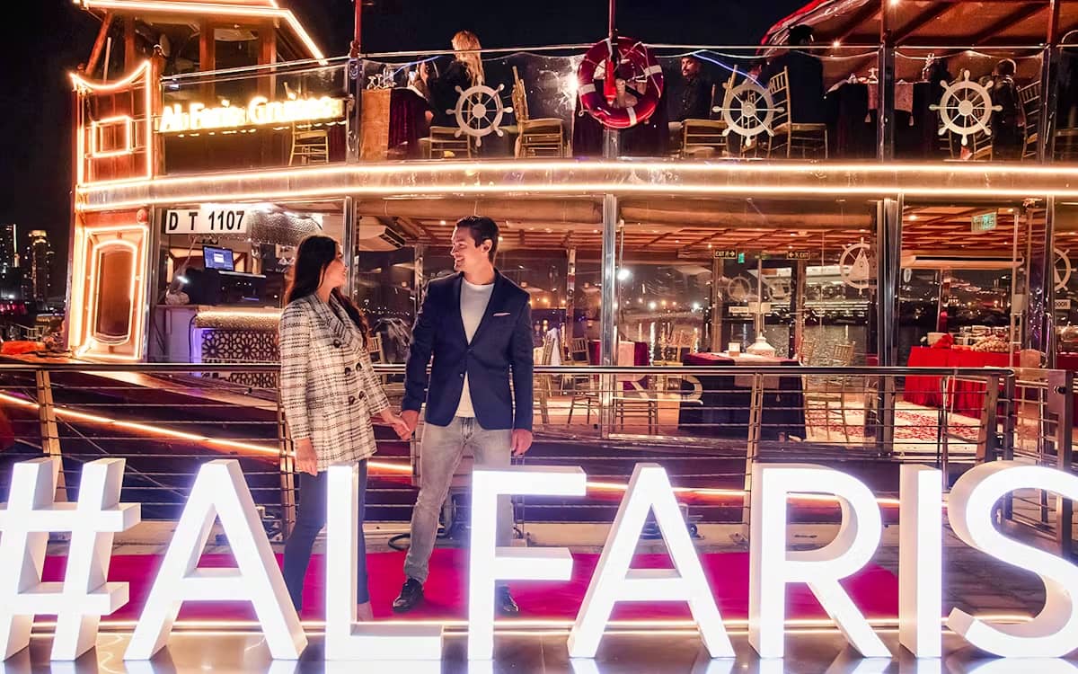 The cuisine is unquestionably the best feature! You may expect a sumptuous international buffet that includes grilled meats, salads, sweets, and Arabic appetizers. There will be a live saxophone to establish the mood. You will return to the starting place after two hours of cruise.