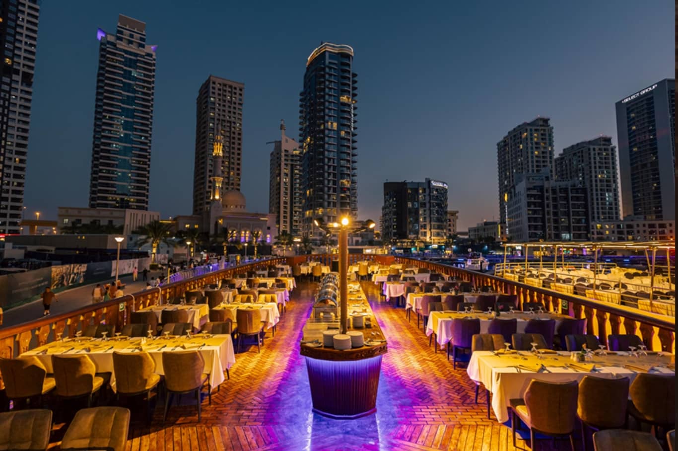 • Take in the breathtaking view of the Dubai cityscape, the world’s largest Ferris wheel, Ain Dubai, and the enchantment of a Tanoura dance performance.