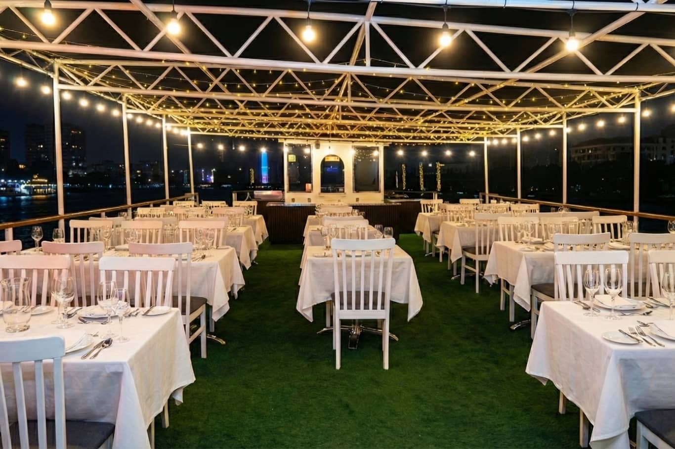 🎆 A Flexible Viewing Options We want to make your experience as comfortable as possible. Therefore, you can watch the stunning illuminated skyline and Burj Khalifa firework show from your preferred viewing option. You can choose between two options for watching the show; either relax in the A/C comfort of our lower deck, or enjoy the breezy open-air atmosphere of the partially open upper deck. Your view will be completely unobstructed from either deck.