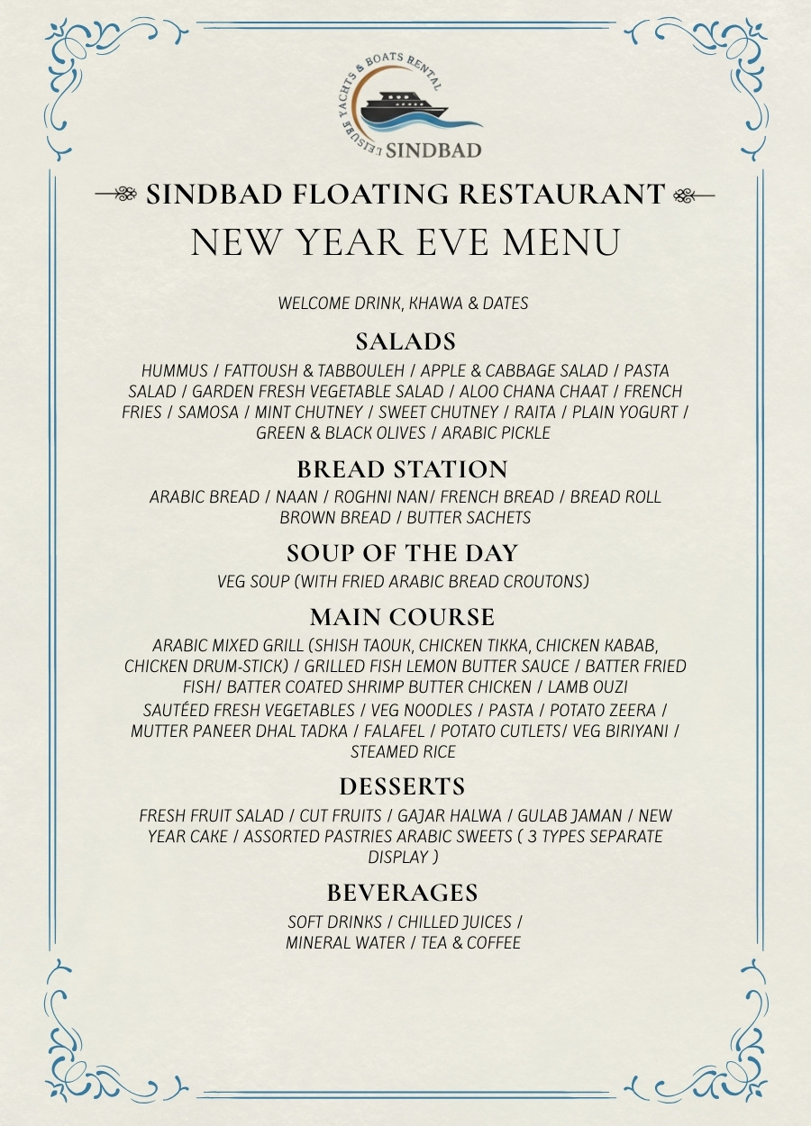 New Year Eve 2025-2026 Gala Dinner Sindbad Yacht Cruise Al Seef to Dubai Canal