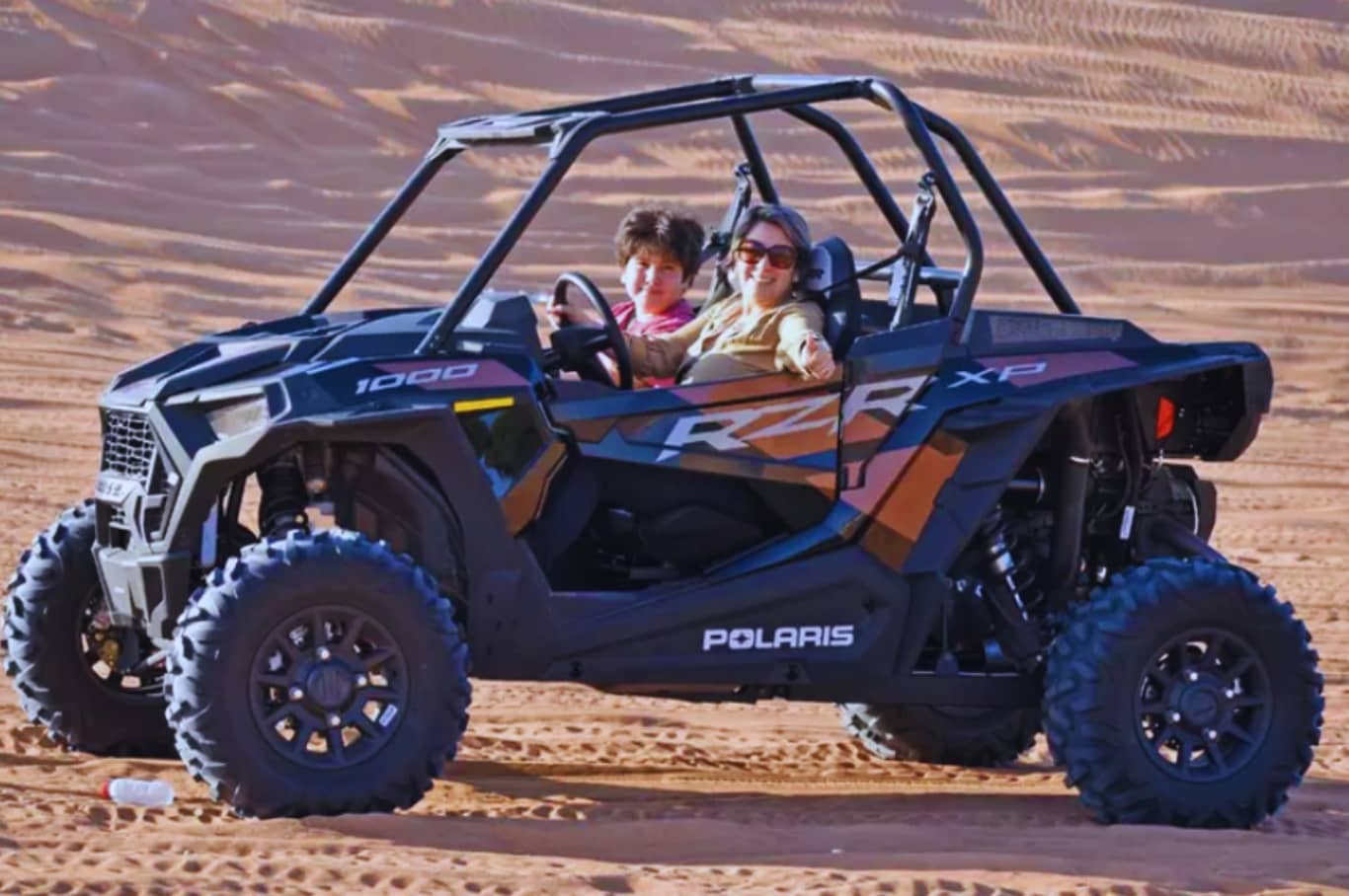 Most dune buggies in Dubai are automated, particularly rental models like the Polaris RZR and Can-Am Maverick. They’re designed this way so that beginners can easily drive on sand without having to worry about shifting gears.