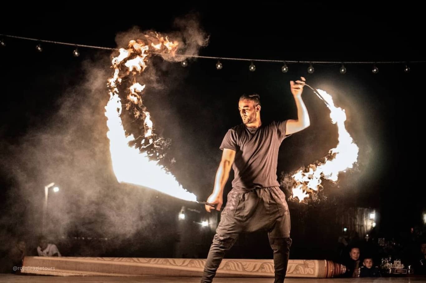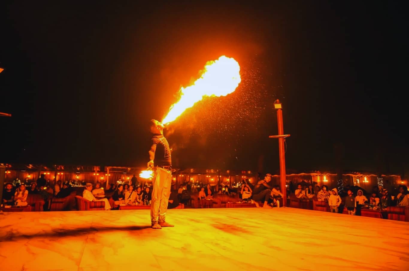 You get to enjoy live shows like belly dancing, tanoura, fire shows and, a traditional Arabic welcome with dates and coffee.