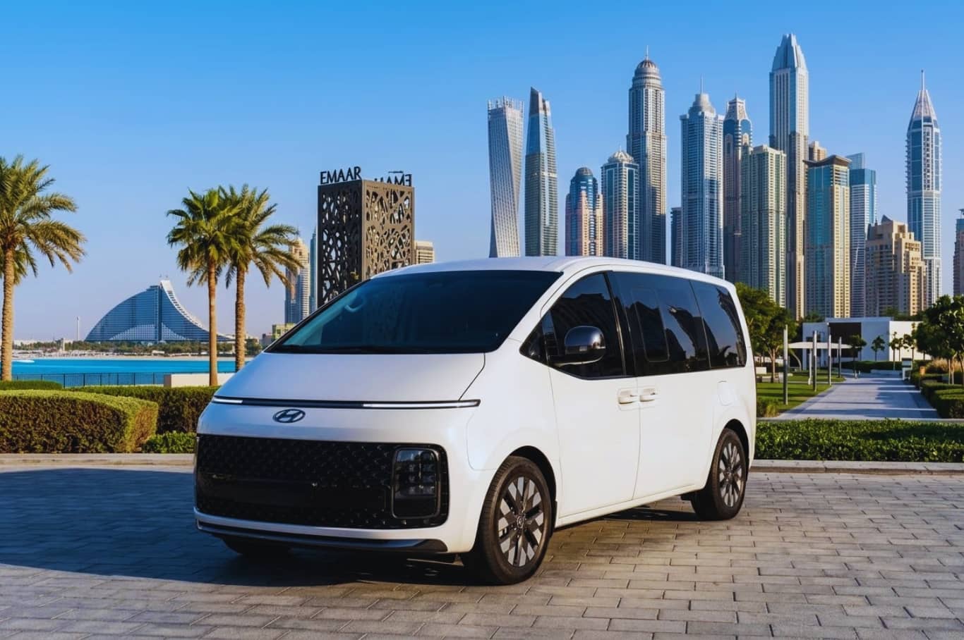 1 | Half Day Dubai | 05 Hrs. | 380 AED is the Rental Price for a 9-seater Hyundai Staria |